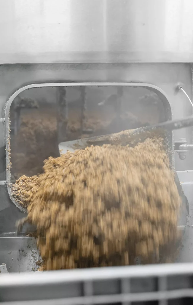 Une fois séchées, les drêches sont broyées pour obtenir une farine de drêches, riche en fibres et facilement incorporable dans de nombreuses formulations alimentaires.
